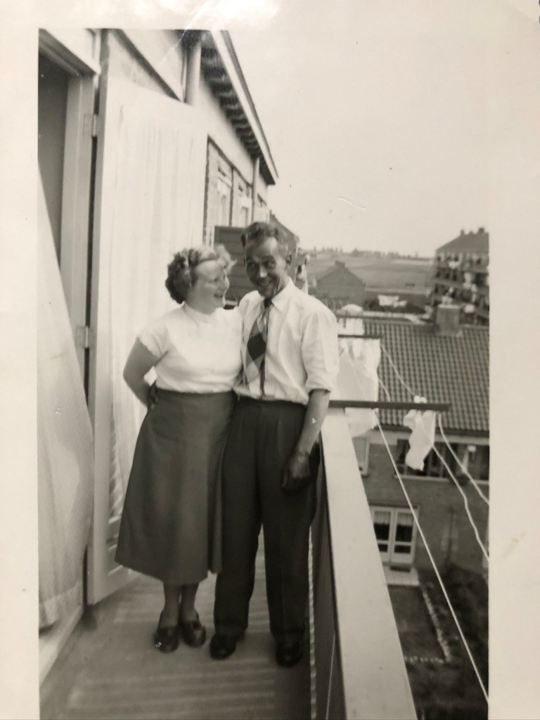Wies en Jan op het balkon van hun appartement in Rotterdam.